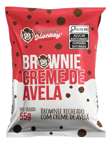 O Brownie Recheado com Creme de Avelã 55g da Grand Monkey é um snack doce individual que combina a massa densa e rica de brownie com um recheio cremoso de creme de avelã, entregando sabor intenso e textura indulgente. Ideal para momentos de lanche ou sobremesa rápida, ele oferece praticidade e sabor sem necessidade de preparo.