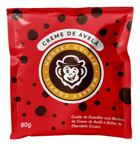 O Cookie de Creme de Avelã 80 g da Monkey Cookie é um biscoito artesanal gourmet, com recheio cremoso de avelã e massa cuidadosamente assada para garantir textura crocante por fora e macia por dentro.