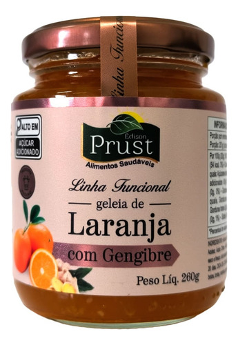 A Geleia de Laranja com Gengibre 260g da Prust é um produto da linha funcional que combina laranjas selecionadas com gengibre, oferecendo sabor cítrico‑picante em textura cremosa para o uso cotidiano.