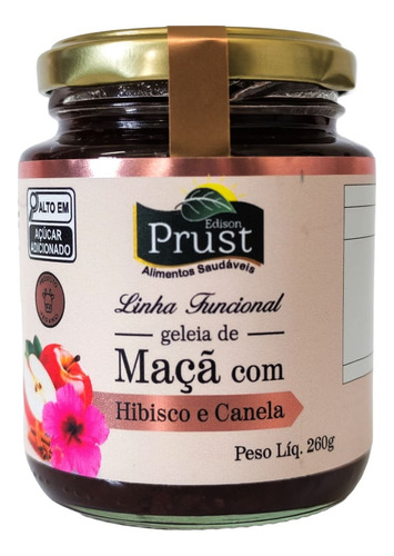 A Geleia de Maçã com Hibisco e Canela 260 g da Prust Alimentos é uma geleia funcional elaborada com maçãs selecionadas, hibisco e canela, apresentando sabor frutado, toque floral e leve especiaria aromática.