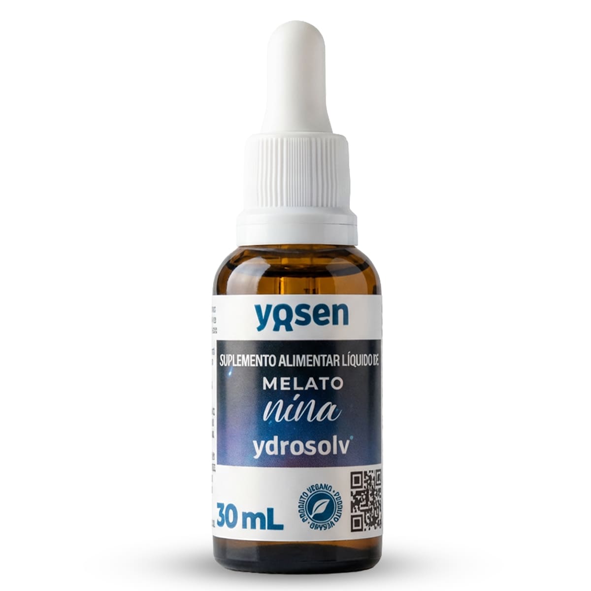 A Melatonina Ydrosolv da Yosen é um suplemento alimentar em gotas, em frasco de 30ml, com 0,21mg de melatonina por gota e rendimento de aproximadamente 750 gotas por frasco.