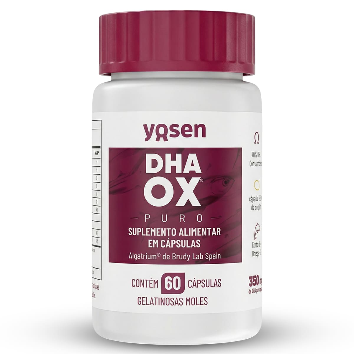 O DHAOX Puro 60 cápsulas da Yosen é uma opção de ômega-3 com foco em DHA, em cápsulas pequenas, com 350mg de DHA por cápsula e uso simples (1 cápsula ao dia).