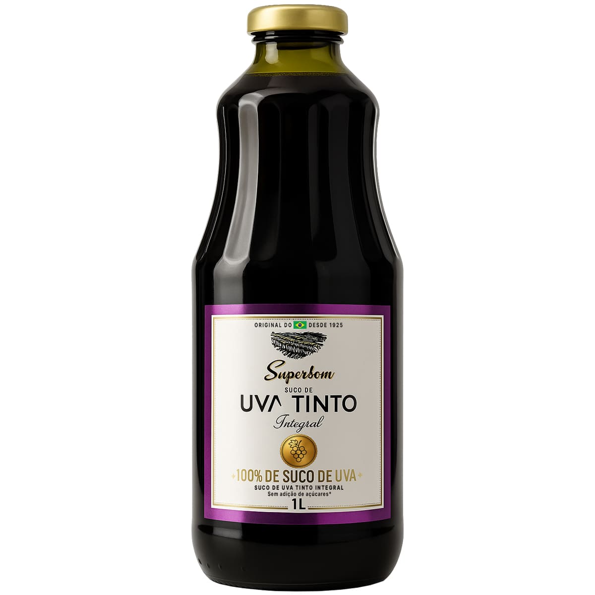 O Suco de Uva Tinto Integral 1L da Superbom é um suco feito a partir de 100% suco de uva Isabel, sem adição de açúcares, conservantes ou corantes, e em formato de garrafa de vidro de 1 litro.