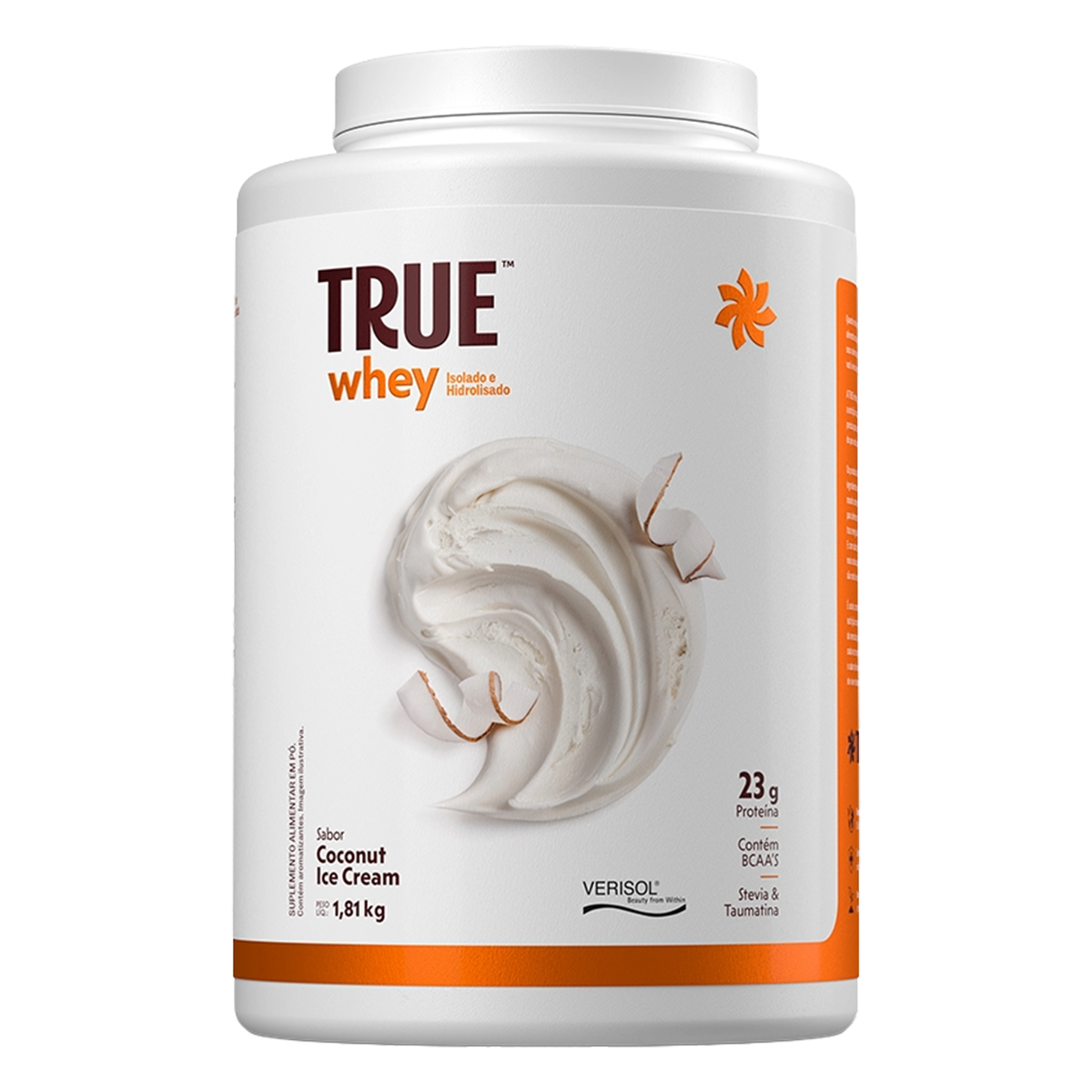 O True Whey Coconut Ice Cream 1 810 g é um suplemento proteico em pó da True Source, elaborado com um blend premium de proteína isolada e hidrolisada do soro de leite (True Whey). Enriquecido com peptídeos bioativos de colágeno Verisol®, leite de coco em pó, triglicerídeos de cadeia média (TCM) e amêndoas de castanha de caju, oferece uma experiência funcional com sabor irresistível de sorvete de coco.